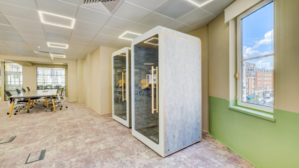With the right choice of colours, materials and furniture, it went from flat to flowing — this Mayfair office now reflects the energy of the people working inside it.